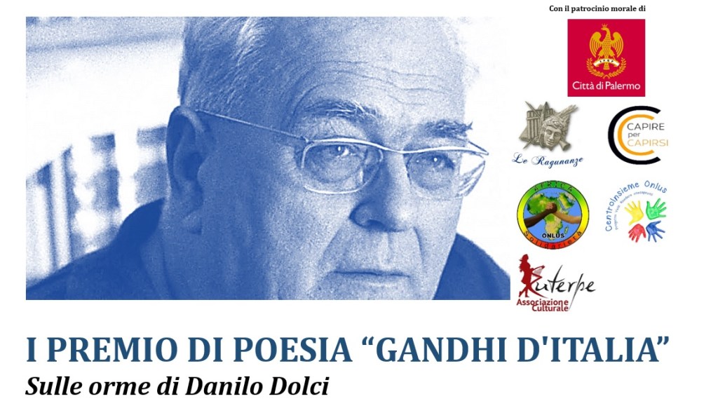 Con l’autorizzazione della famiglia Dolci, nella figura del figlio dott. Amico Dolci, e con il patrocinio morale del Comune di Palermo, viene bandito il Primo Premio di Poesia “Gandhi d’Italia” dedicato alla poliedrica figura intellettuale di DANILO DOLCI (1924-1997) poeta, scrittore, educatore e sociologo, attivista non violento noto, appunto, come il “Gandhi italiano”. Dolci, oltre alla sua attività educativa, operò nella lotta alla mafia; nel 1957 in Russia il suo impegno per la lotta non violenta venne riconosciuto con il celebre “Premio Lenin per la pace” (che accettò, pur dichiarando di non essere comunista). Nello stesso anno, con il saggio Inchiesta a Palermo, ottenne il prestigioso Premio Viareggio. Numerosi altri furono, negli anni, i riconoscimenti a lui tributati. Immensa la sua produzione letteraria, tra le maggiori opere vanno ricordate Banditi a Partinico (1956), Spreco. Documenti e inchieste su alcuni aspetti dello spreco nella Sicilia occidentale (1960), Verso un mondo nuovo (1964), Non esiste il silenzio (1974), La comunicazione di massa non esiste (1987), Se gli occhi fioriscono. 1968-1996 (1997) e Una rivoluzione nonviolenta (2007).