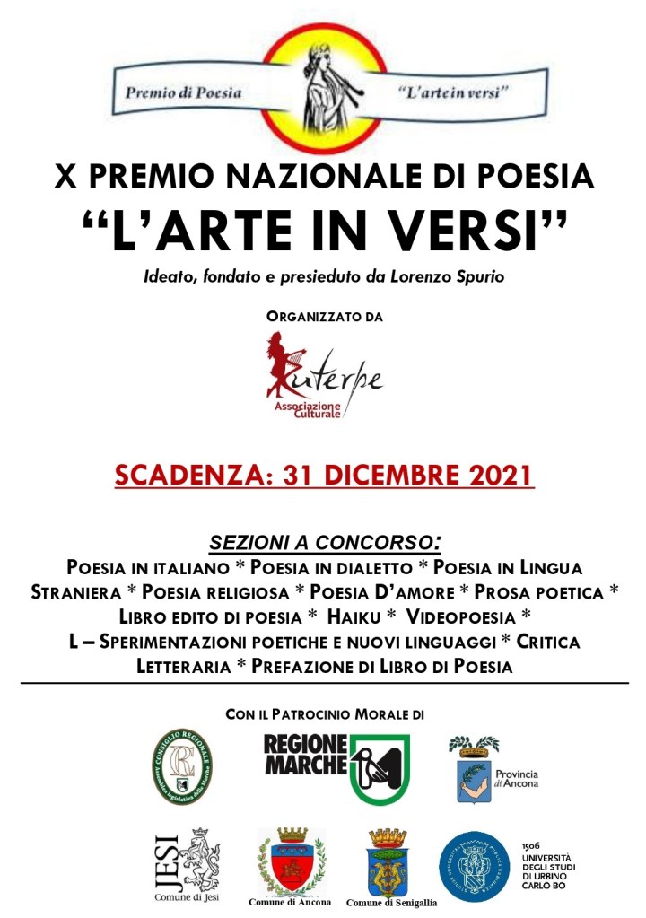 Viene bandita la decima edizione del Premio Nazionale di Poesia “L’arte in versi”, ideato, fondato e presieduto dal poeta e critico letterario Lorenzo Spurio e organizzato dall’Associazione Culturale Euterpe di Jesi.