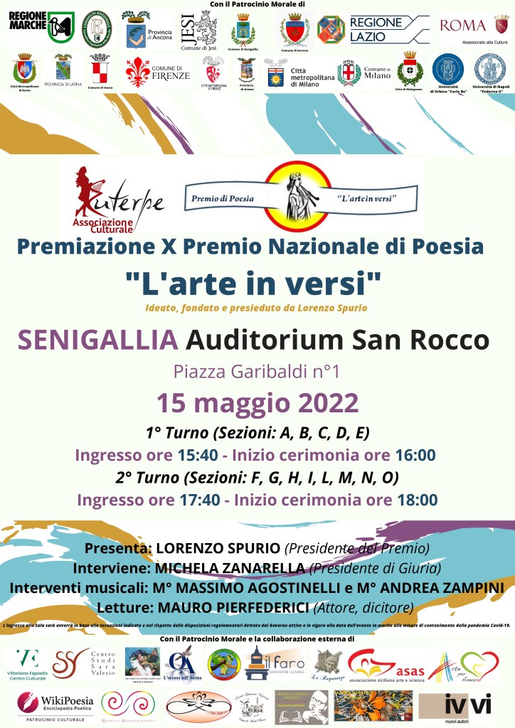 Viene bandita l’undicesima edizione del Premio Nazionale di Poesia “L’arte in versi”, ideato, fondato e presieduto dal poeta e critico letterario Lorenzo Spurio e organizzato da Euterpe APS di Jesi.